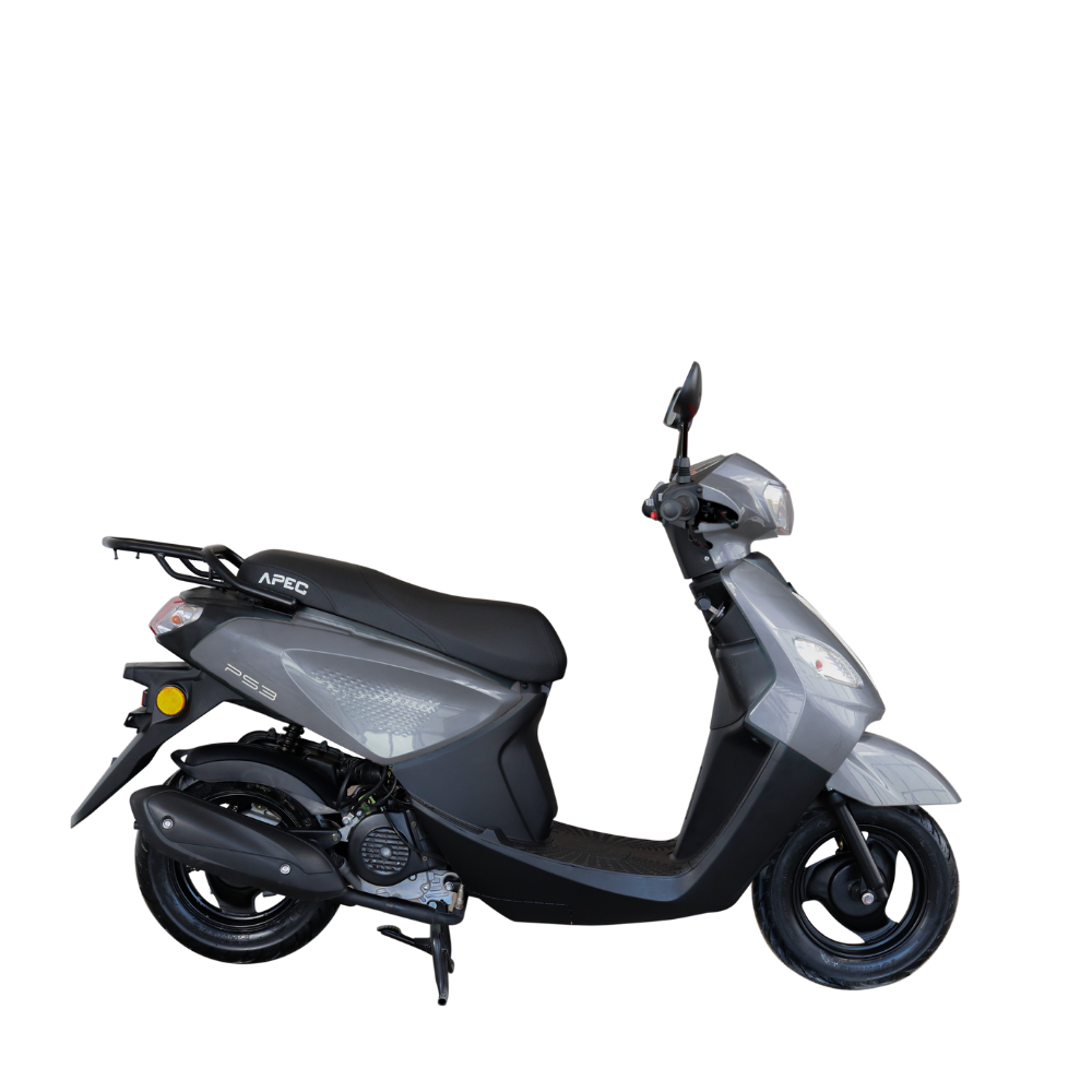 APEC PS3, 2.1 kW azami net gücü ve 45 km/h azami hızıyla şehir içi ulaşımda etkileyici bir performans sunar. 3.00-10 ve 3.50-10 lastik boyutları, yol tutuşunu artırarak hem güvenliği hem de sürüş keyfini maksimum düzeye çıkarır. CVT otomatik vites sistemi, sürüş sırasında akıcılığı ve kolaylığı garanti eder.